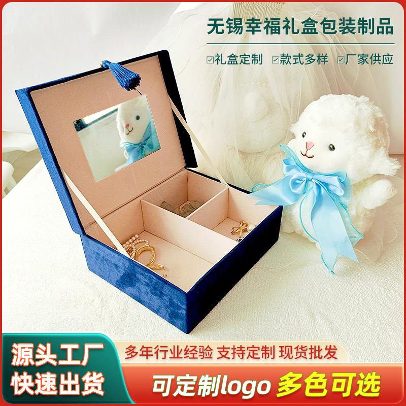 High-grade Italian velvet with mirror jewelry box multi-functional fine jewelry jewelry jewelry storage box factory