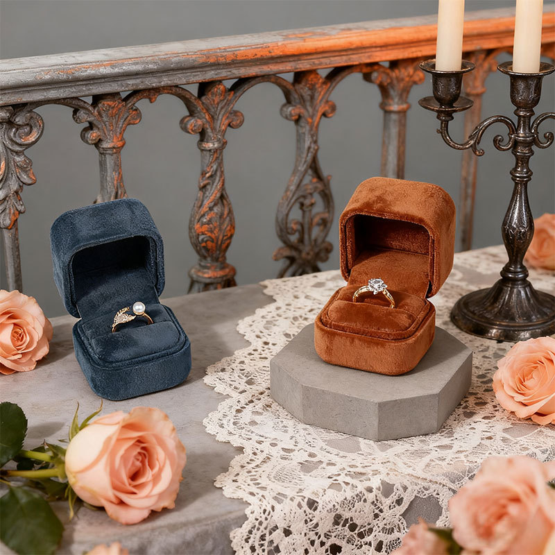 Customized Velvet Square Rounded Mini Ring Box European and American Pair Ring Single Ring Proposal Jewelry Ring Storage Box