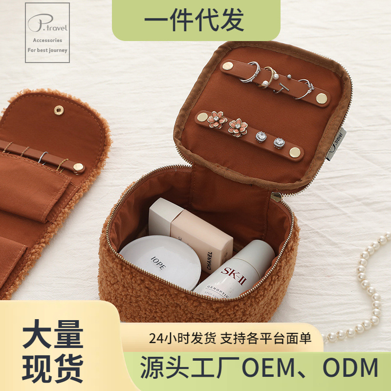 Cross-border Advanced Plush Portable Jewelry Box Light Luxury Bracelet Ring Jewelry Box Velvet Bag Jewelry Jewelry Storage Box