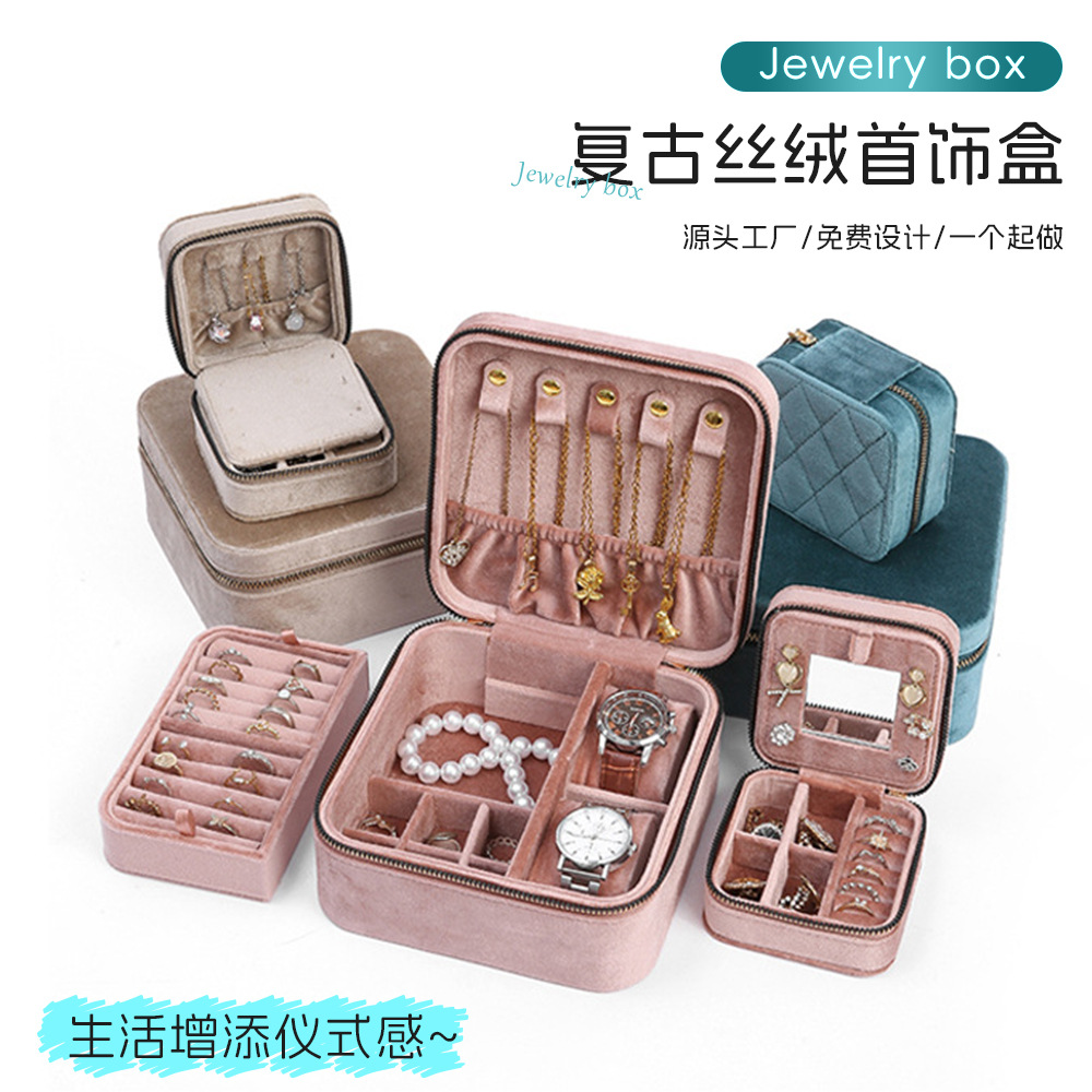 Fashionable Retro Velvet Multifunctional Portable Exquisite Jewelry Box Travel Earrings Earrings Necklace Jewelry Storage Box