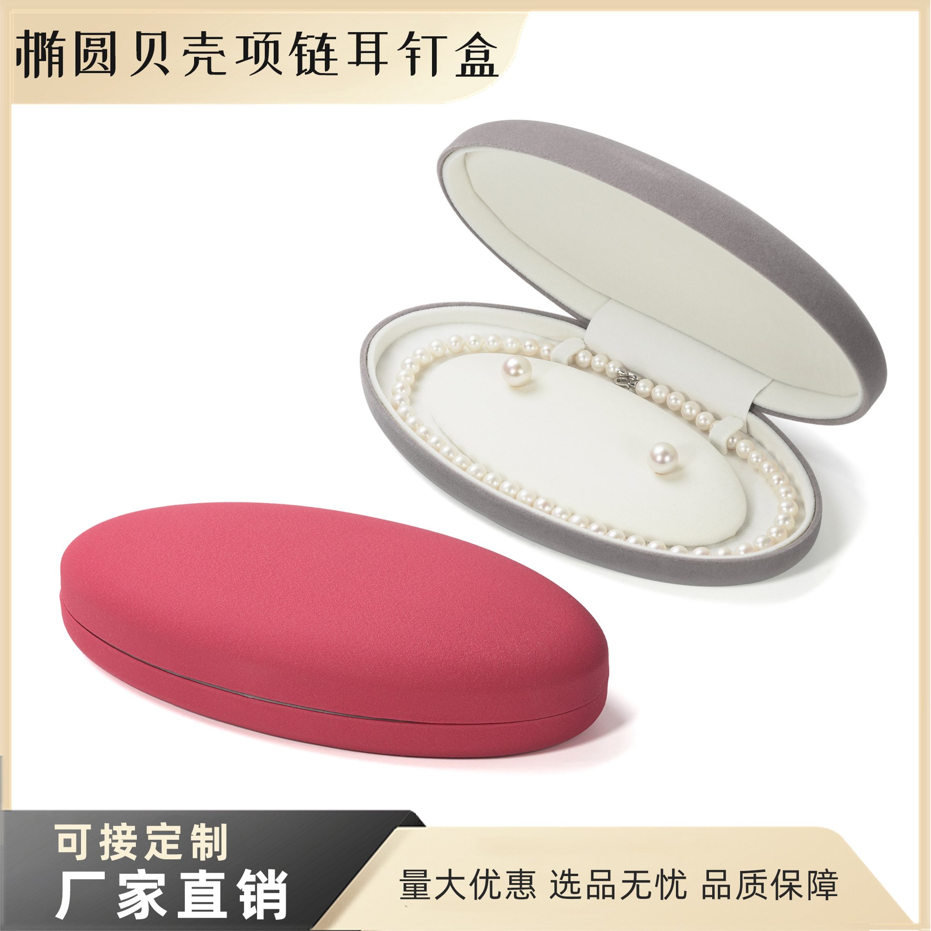 Oval shell-shaped pu leather jewelry necklace earring box high-grade velvet jewelry jewelry packaging box gift