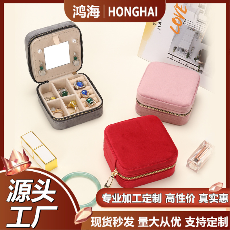 Velvet Zipper Jewelry Box, Simple and Convenient Jewelry Box, Necklace Jewelry Box, Ring Earrings Jewelry Storage Box