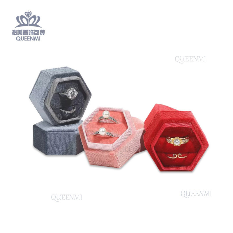 Cross-Border Velvet Ring Box Jewelry Box Hexagonal Jewelry Box Jewelry Packaging Box Sense Foreign Trade