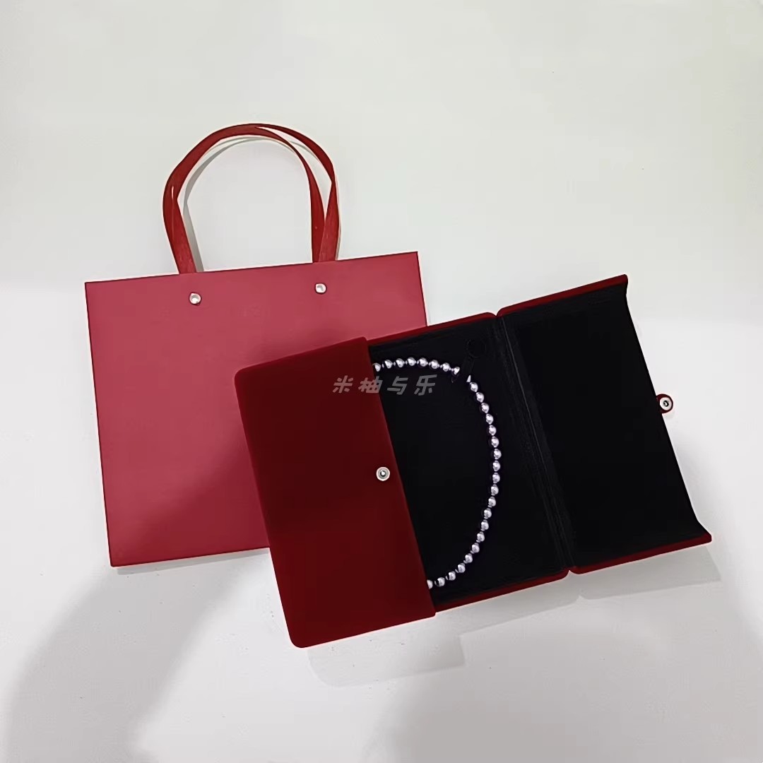 wine red Velvet Pearl Special Box High-grade 50cm Inner Bead String Type Large Necklace Two Buckle Packaging Box for Mother