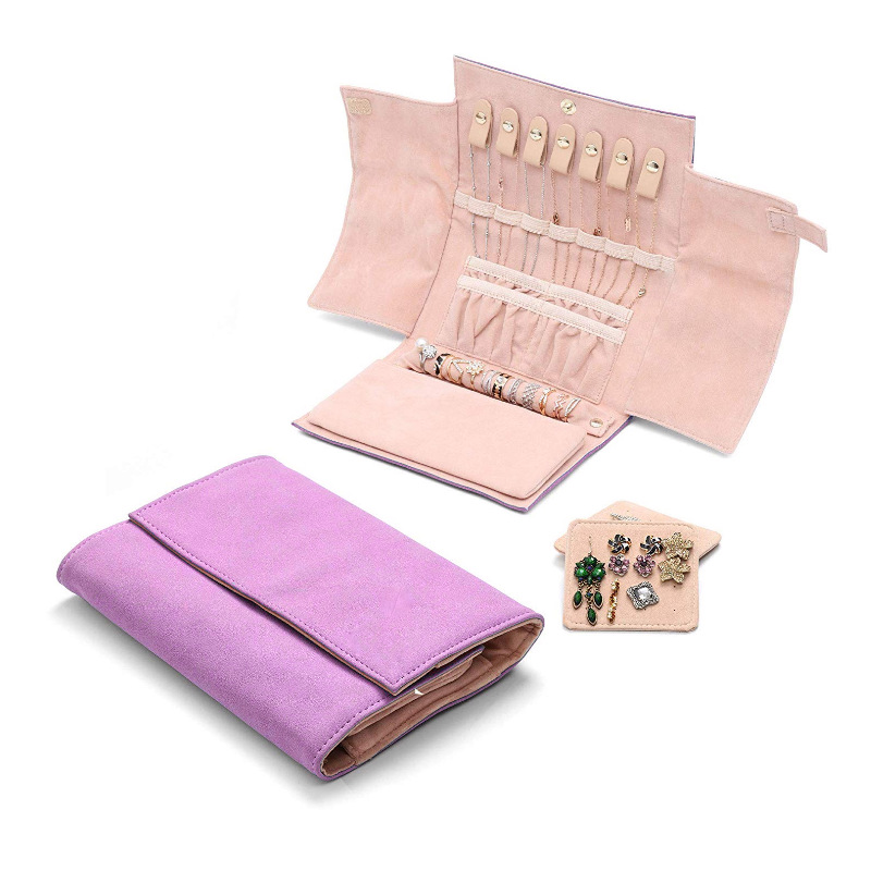 Manufacturer customized cosmetic bag leather velvet jewelry storage bag PU makeup Jewelry earrings roll bag