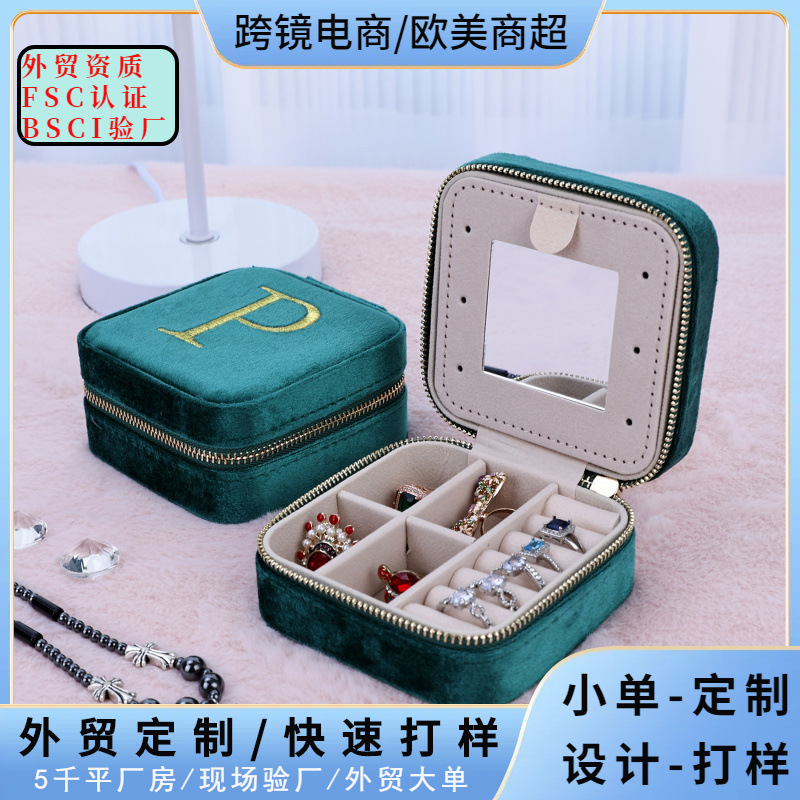Factory supply Velvet Ear stud box with mirror jewelry box portable travel necklace earrings cosmetics storage box