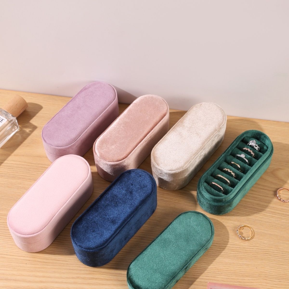 Ins Style Oval Velvet Jewelry Box Compartment Portable Storage Box Travel Earrings Ring Organizer Box Anti-Oxidation