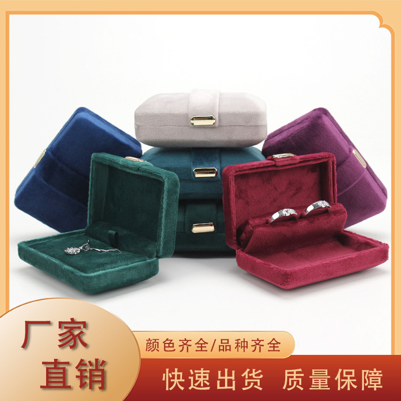 Dongguan Spot Velvet Fabric Jewelry Box Double Ring Pendant with Metal Buckle Simple, Exquisite and Convenient Storage Jewelry Box
