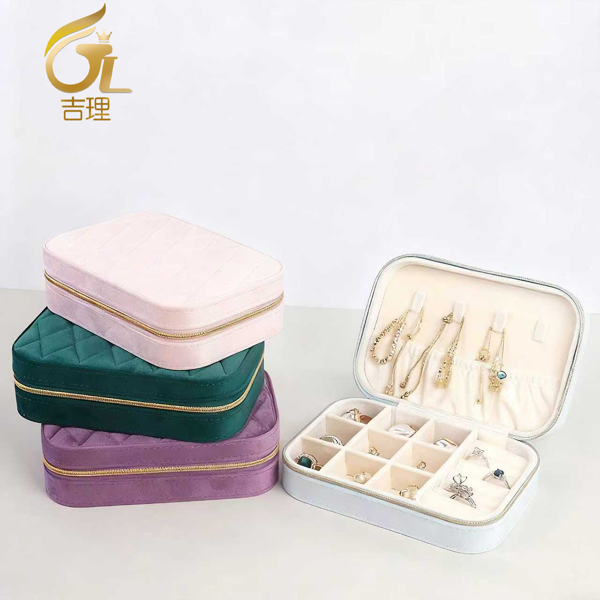 New Velvet Compartment Storage Jewelry Box Daily Accessories Bracelet Necklace Storage Zipper Portable Jewelry Bag Wholesale