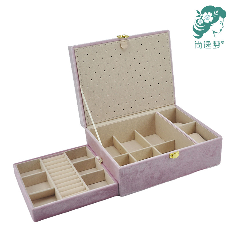 Cross-Border Source Factory High-End Pink Velvet Flocking Cloth Double Multi-Layer Super Large Capacity Jewelry Storage Box