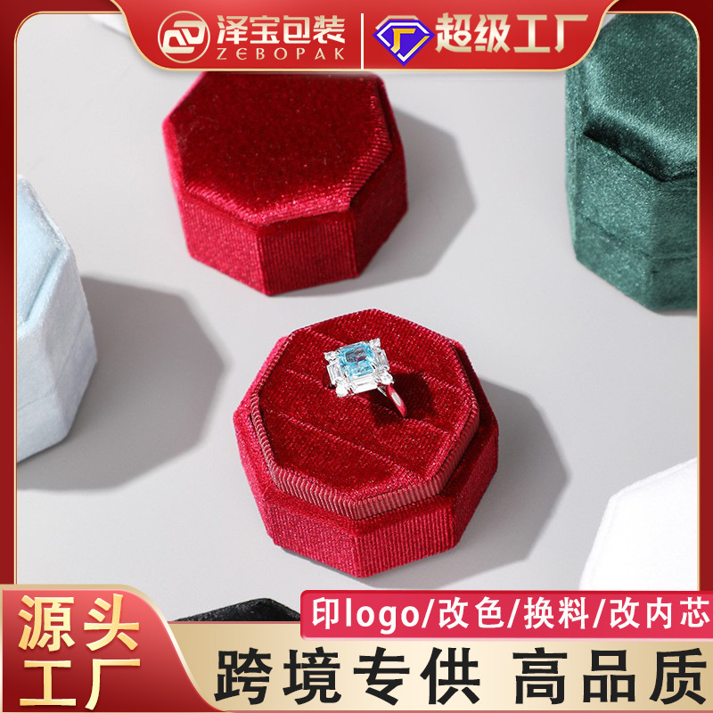 In-Stock Octagonal Three-Ring Velvet Jewelry Box, Cross-Border Jewelry Box, Jewelry Packaging Box with a High-End Feel