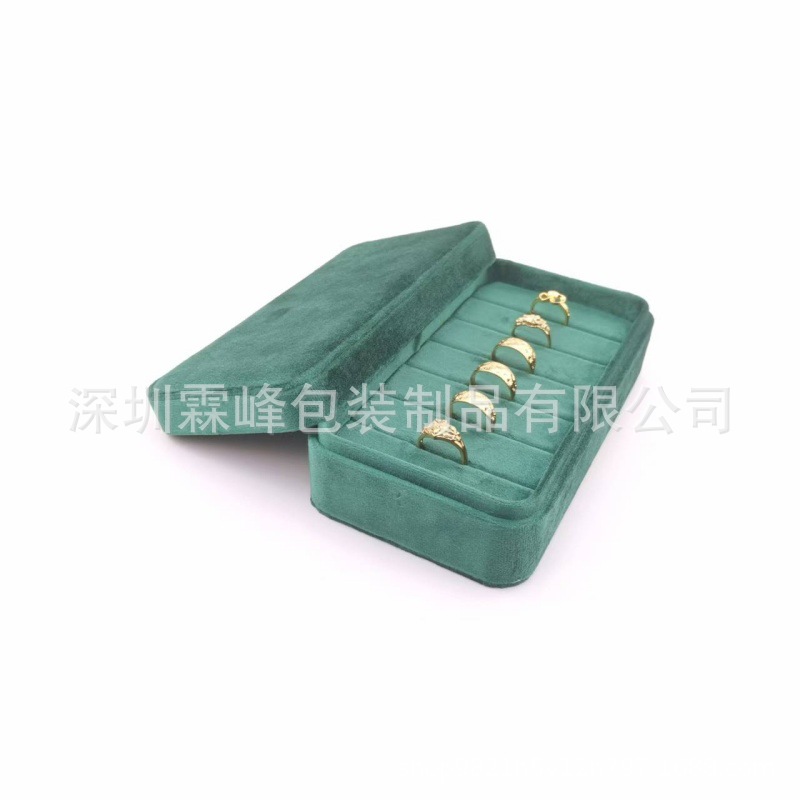 Velvet Simple Jewelry Travel Portable Rectangular Fleece Multi-grid Jewelry Storage Box Dark Green