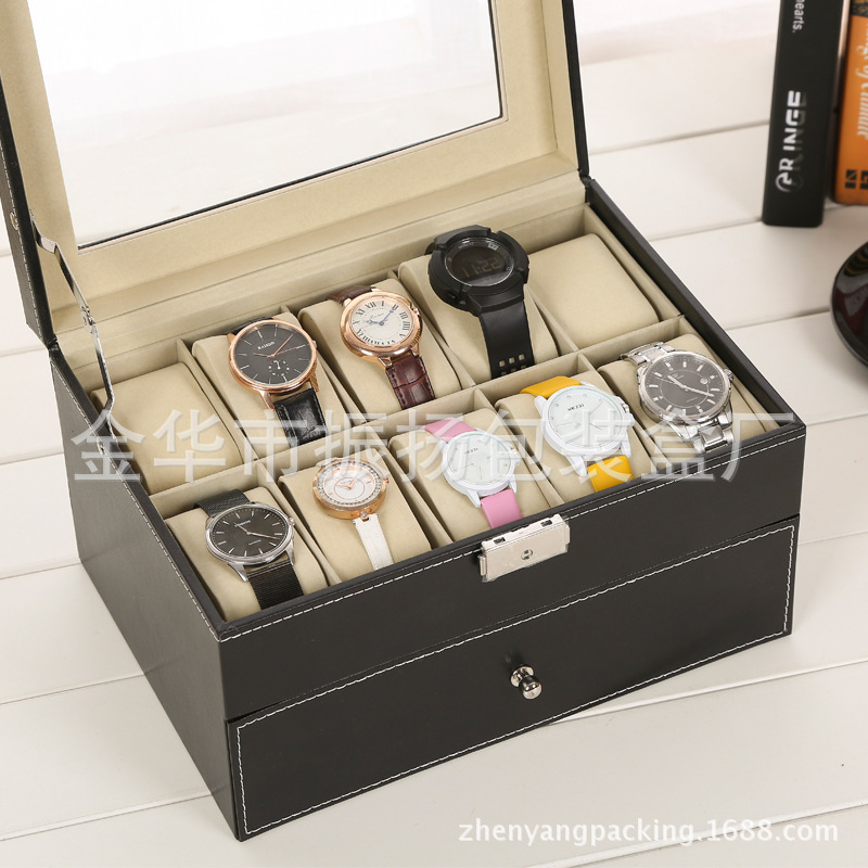 In-Stock Double-Layer 20-Slot Watch Box Pu Leather with Gray Velvet Interior Watch Display Box Storage Box Direct from Manufacturer