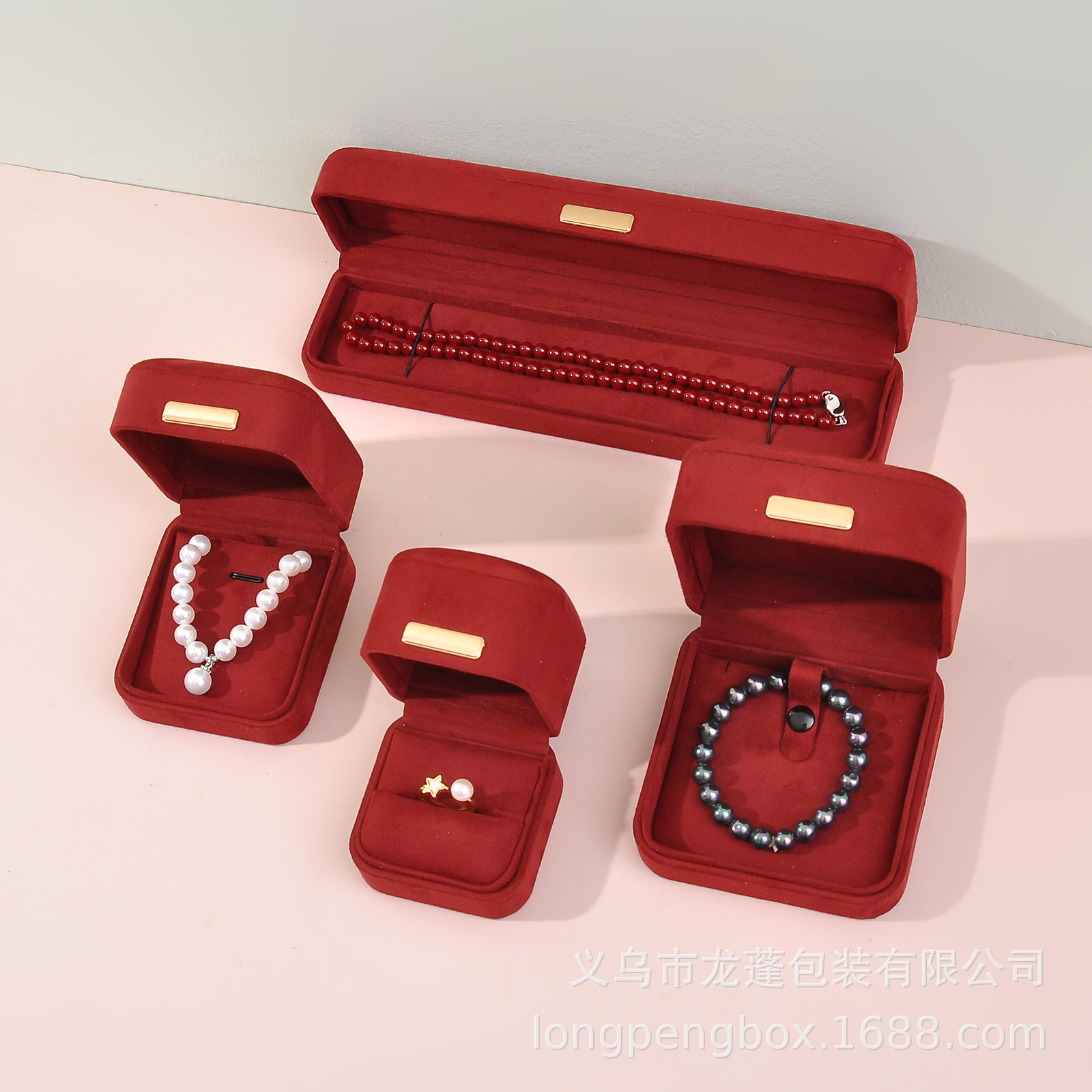 High-End Arch Top Burgundy Milan Velvet Jewelry Packaging Box Jewelry Ring Necklace Bracelet Pendant Box Wholesale