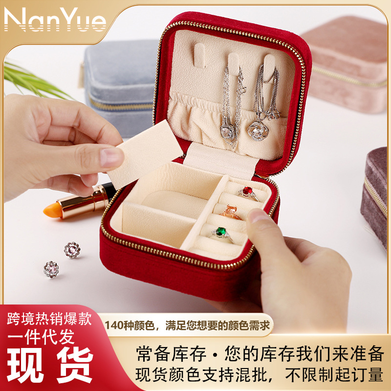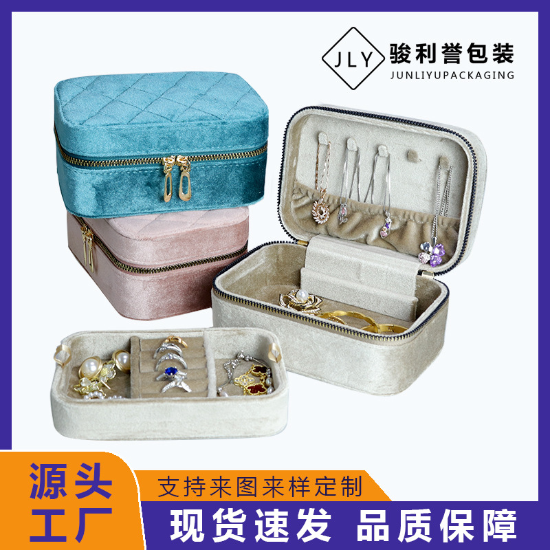 Double-layer Jewelry Box Lisi Velvet Zipper Storage Box Portable Jewelry Bag Portable Earrings Necklace Flannel Jewelry Box