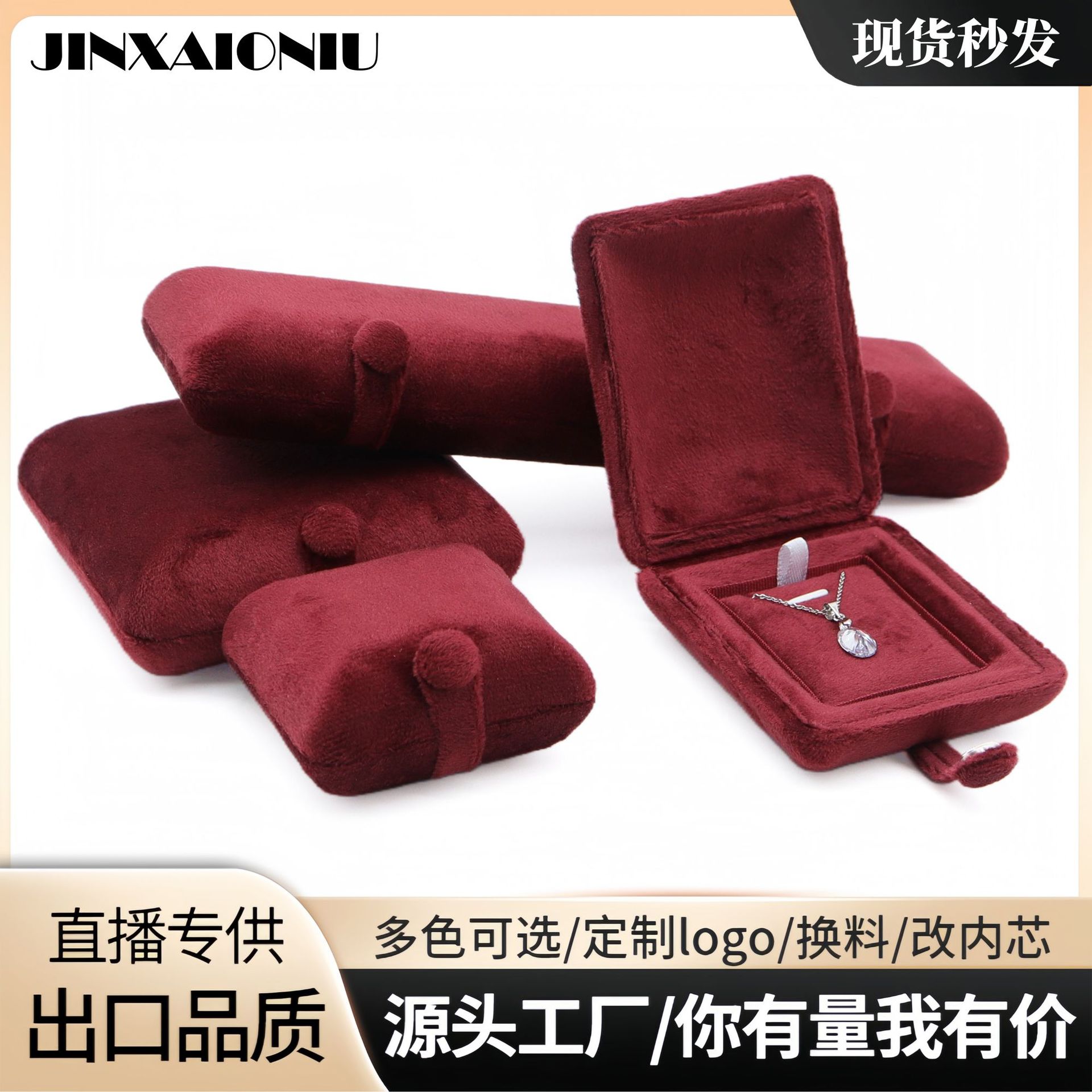 Burgundy Velvet Jewelry Box, High-End Ring Gift Box, Cross-Border Storage, Ready Stock Wholesale Jewelry Gift Packaging Box