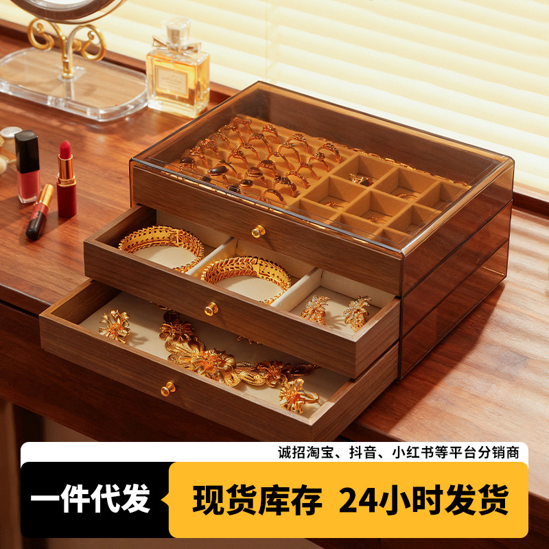 Walnut Jewelry Storage Box Bracelet Bracelet Earrings Velvet Tray Accessible Luxury High-End Solid Wood Multi-Layer Jewelry Storage Box