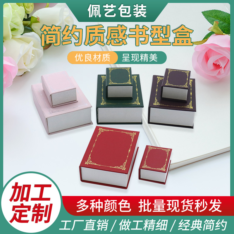 New Sheepskin Retro Simple Book-Shaped Ring Jewelry Set Box Necklace High-Quality Jewelry Packaging Box