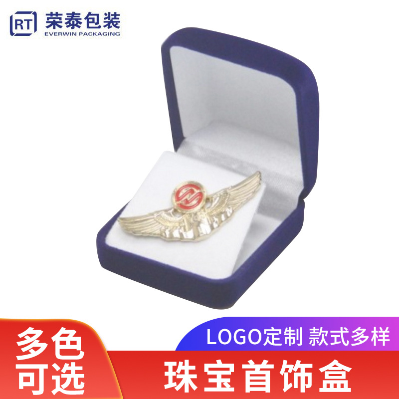 Wholesale flannel badge Box Medal crafts commemorative coin box beveled velvet table hot stamping logo badge jewelry box