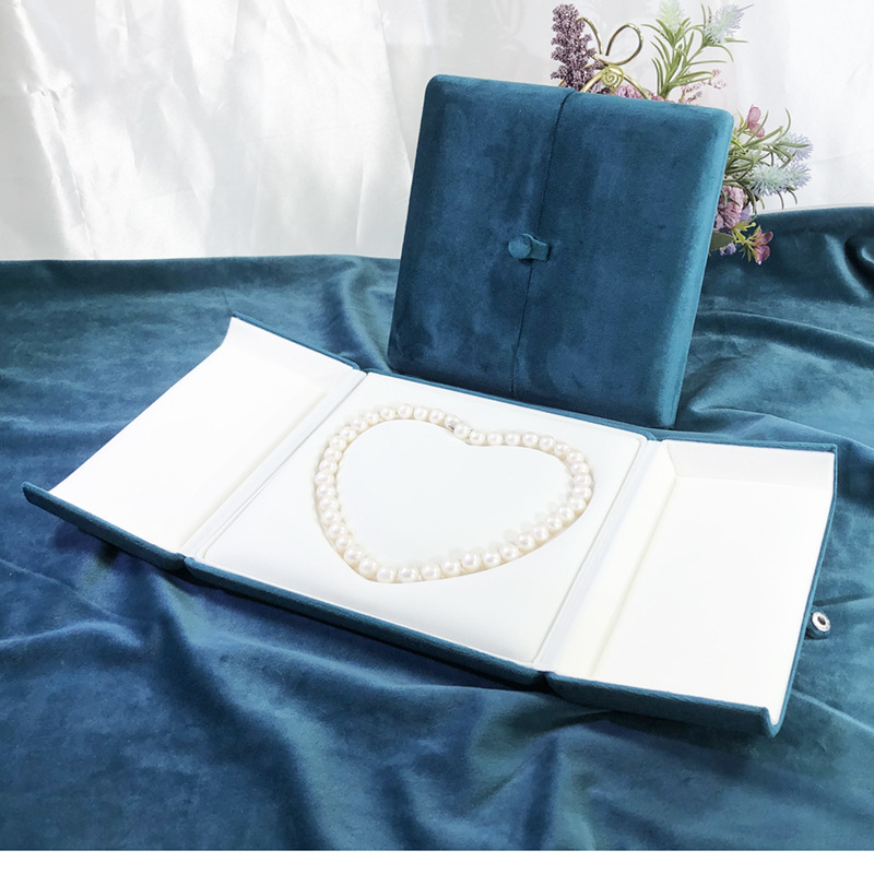 Double-Open Peacock Blue Pearl Gift Box Snap Jewelry Box Velvet Chain Box Fashion Jewelry Box Factory Direct Sale