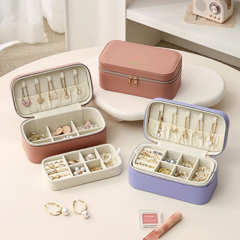Cross-border Simple Ins Jewelry Box Portable Double-layer Jewelry Box Ring Necklace Earrings Jewelry Storage Box