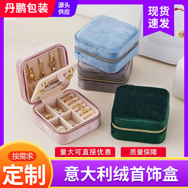 Multi-functional Italian velvet jewelry storage box portable earrings ring necklace jewelry jewelry box in stock