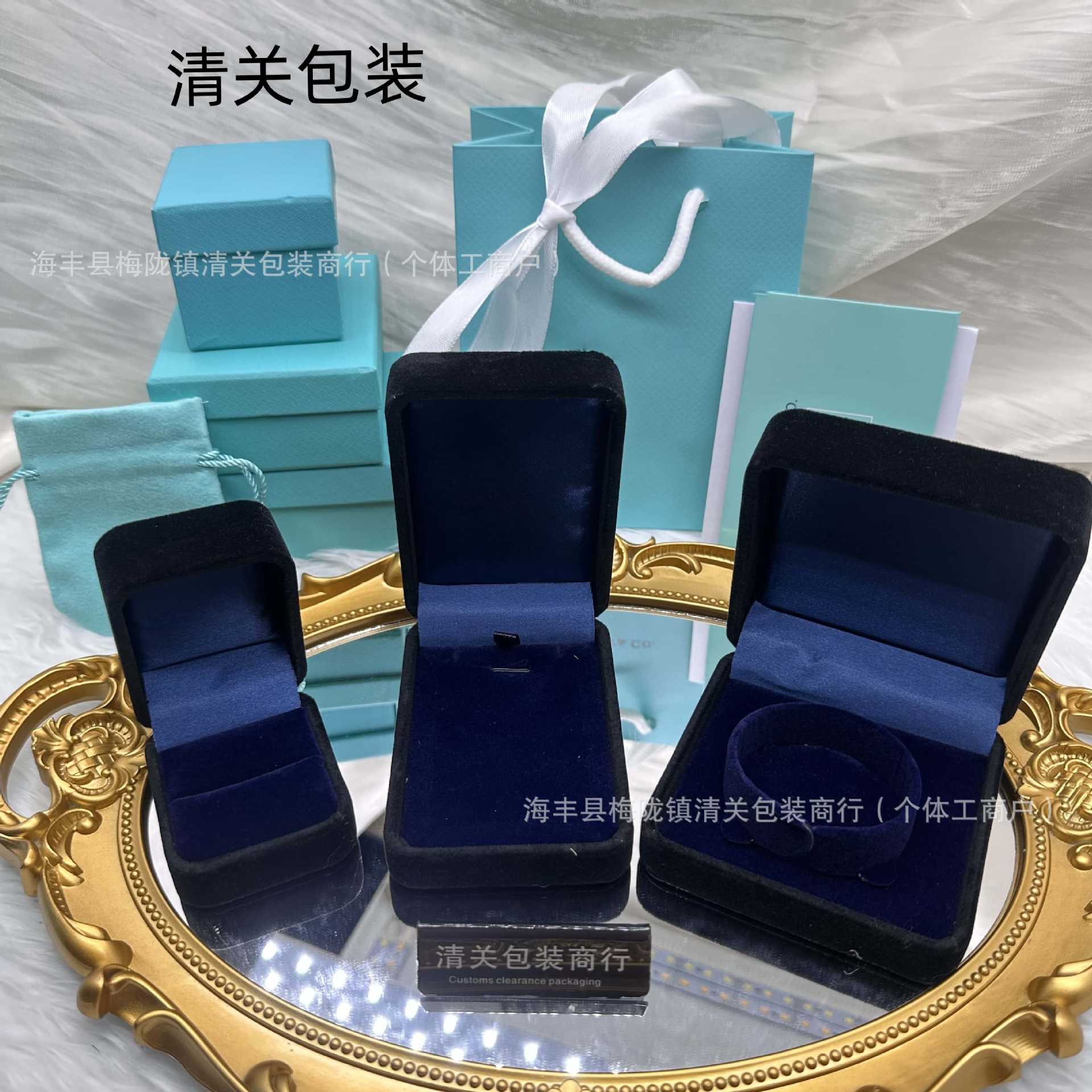 T's Original Packaging Box Tiffany's Counter Velvet Version Green High-End Packaging Ring Necklace Bracelet Bracelet Gift Box
