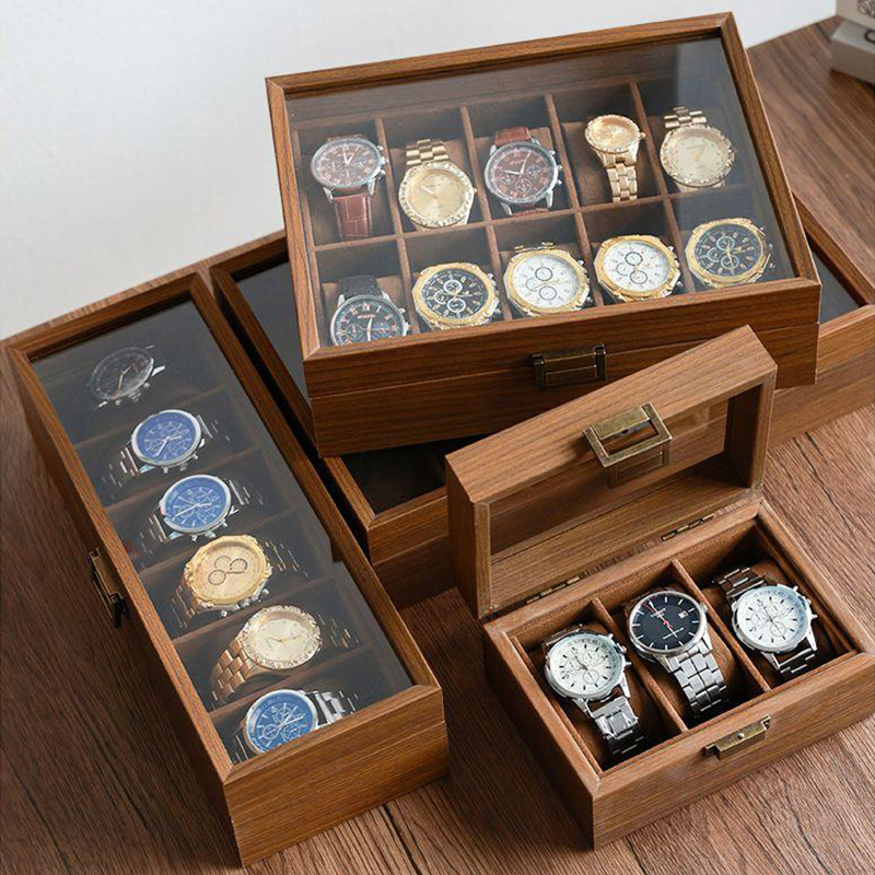 Manufacturer's Ready-Made Wholesale Multi-Position Window Glass Watch Box Packaging Box Walnut Wood Grain Watch Jewelry Display Box