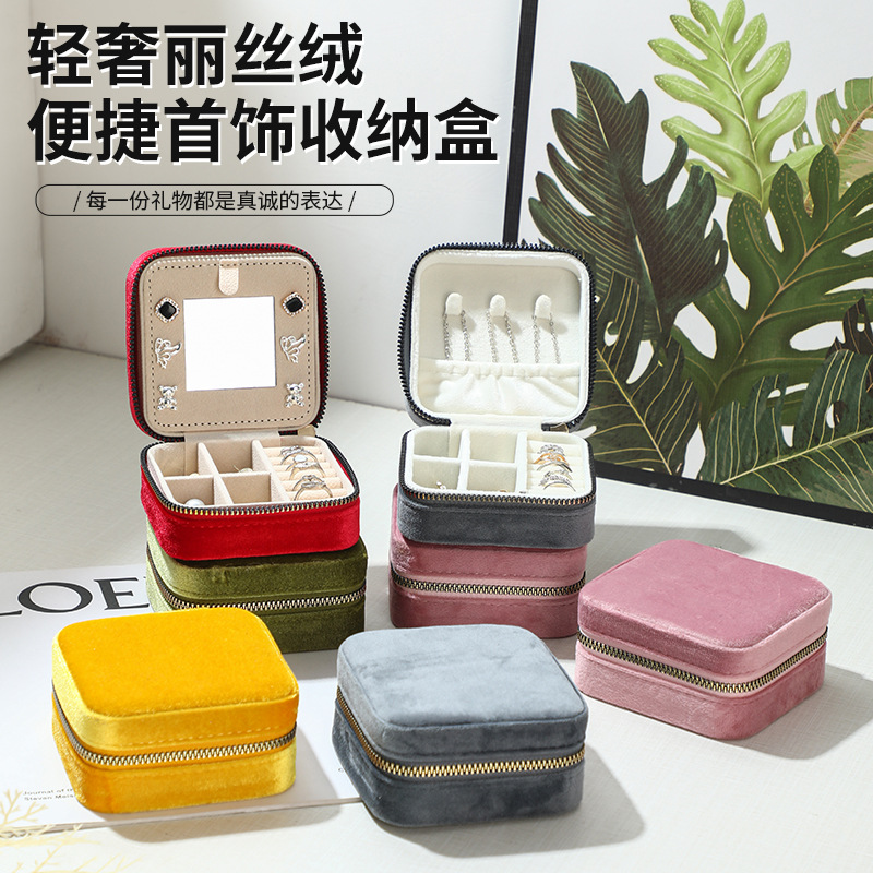 Casual Ins Jewelry Box, High-End Portable Velvet, High-End Portable Mirror Jewelry Box to Store High-End Jewelry