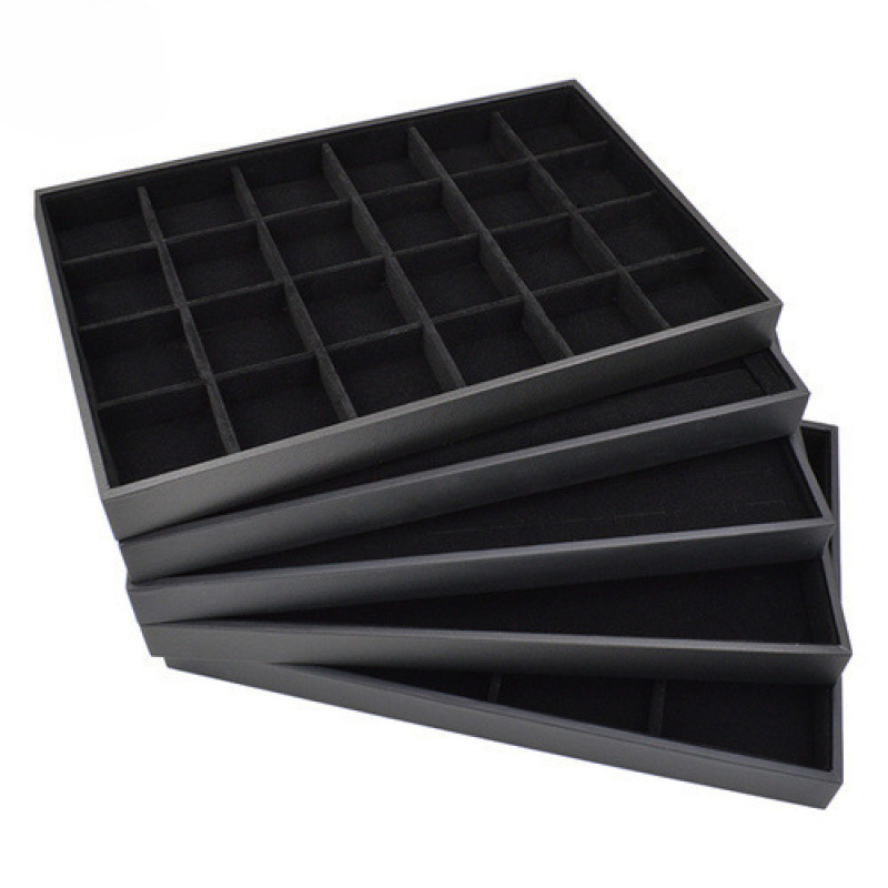 Large Black Velvet Jewelry Tray Without Cover, Bracelet, Necklace, Ring, Earrings, Storage, Jade and Toy Grids Display