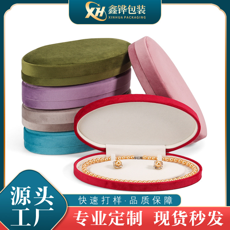 Oval Jewelry Pearl Necklace Box Lisi Velvet Bead Chain Box Jewelry Pearl Packaging Box Earring Box Jewelry Box