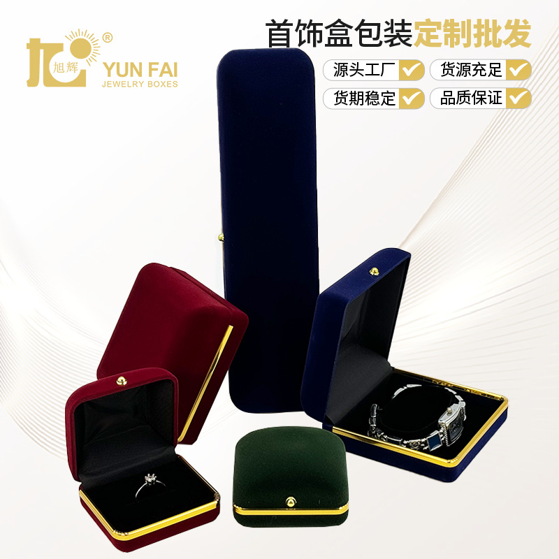 Xuhui Wholesale Gold Edge Velvet Flocking Cloth Ring Box Solid Color Earring Jewelry Storage Box Jewelry Packaging Box