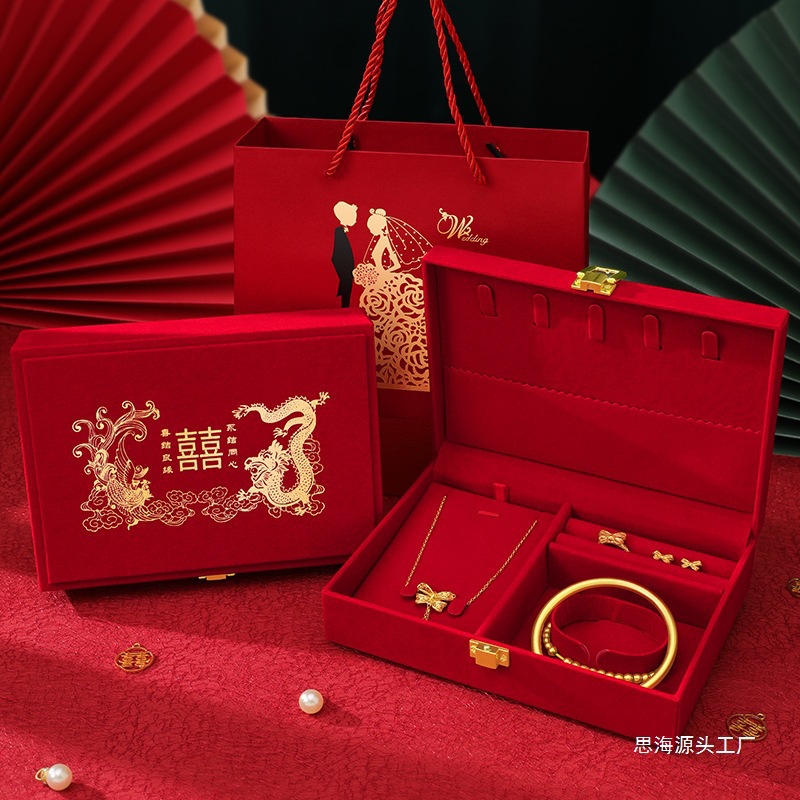 Jewelry Box Hidden Buckle Double Open Earrings Pendant Necklace Velvet Bracelet Ring Box Jewelry Packaging Box Factory Wholesale
