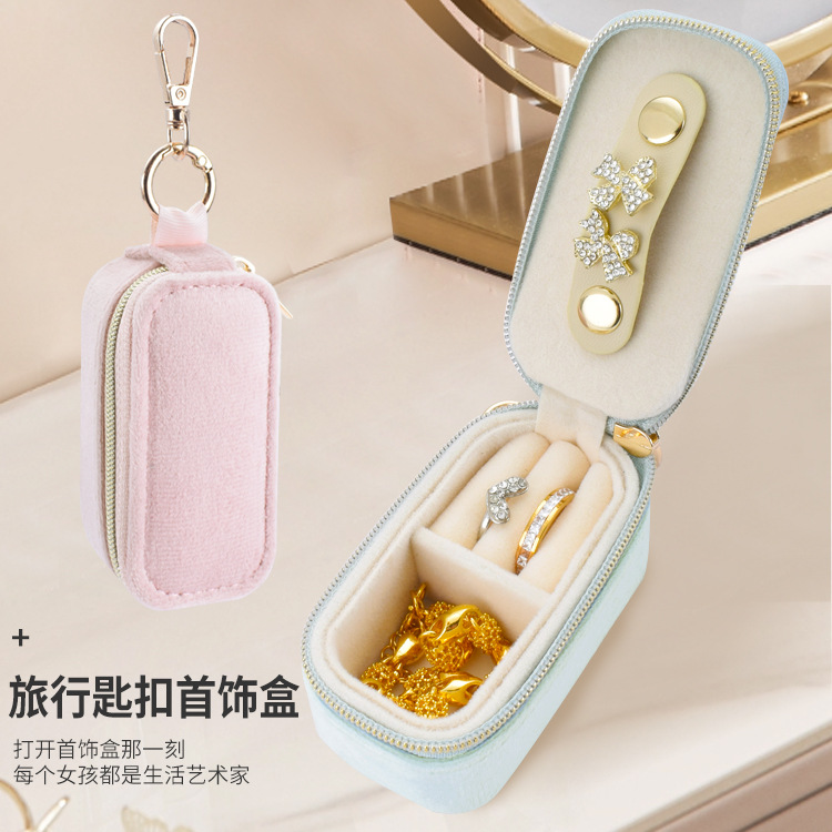 2025 Cross-border New Hanging Key Chain Jewelry Box Travel Mini Cute Girl Velvet Jewelry Storage Box