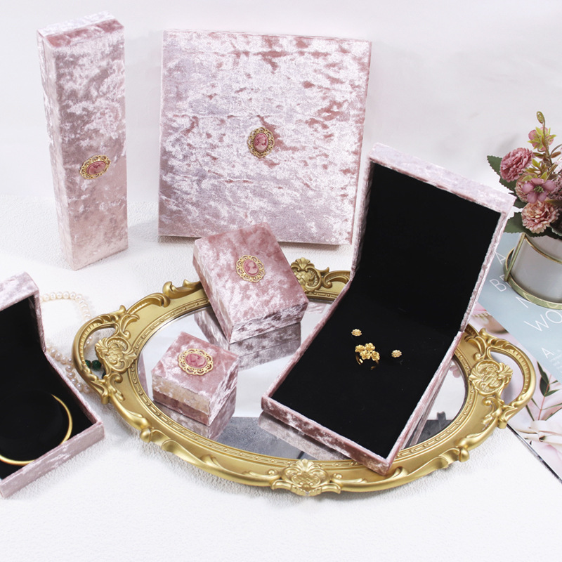 Cross-Border Velvet Pink Retro Queen-Like Jewelry Box Ring Necklace Jewelry Storage Box Gift Box Packaging Box