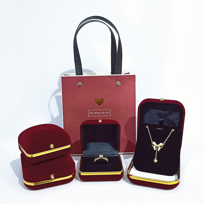 Gilding Craft Lisi Velvet Ring Box wine red Proposal Ring Packaging Box Fashion Packaging Ring Pendant Box