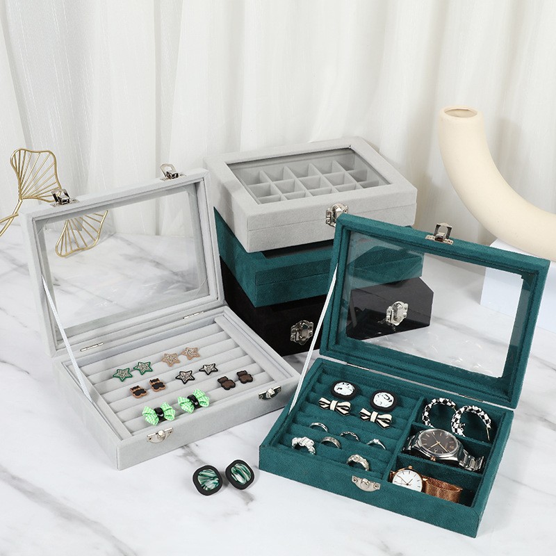Cross-Border Velvet Jewelry Box for Necklaces, Rings, Earrings, and Ear Studs, Transparent Velvet Jewelry Box with Pearl Storage Box, Display Box Wholesale