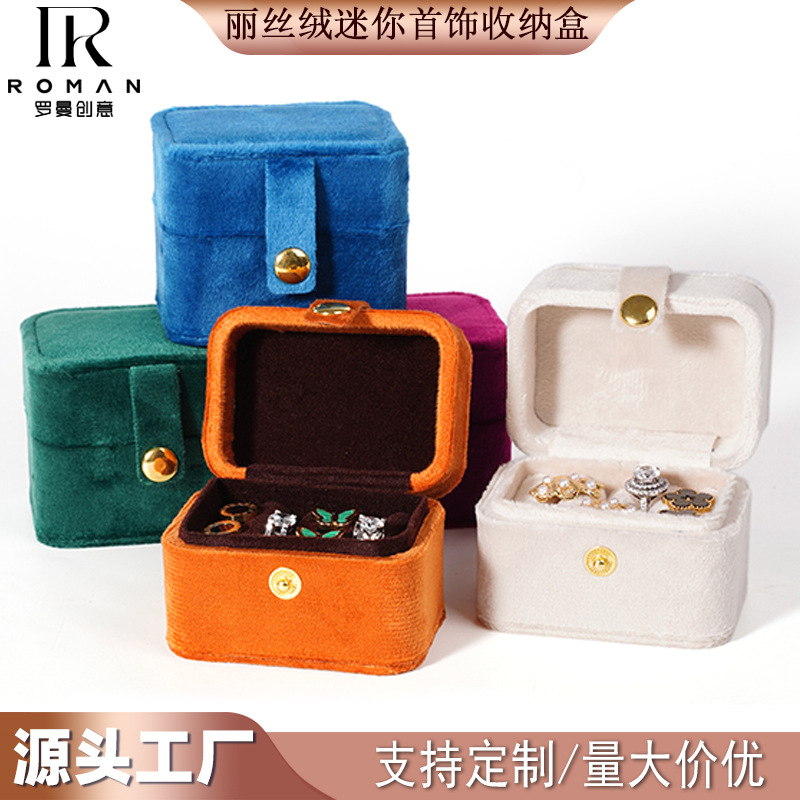 Mini Portable Velvet Concealed Button Packaging Box Ring Earring Storage Box Travel Jewelry Box Storage Box