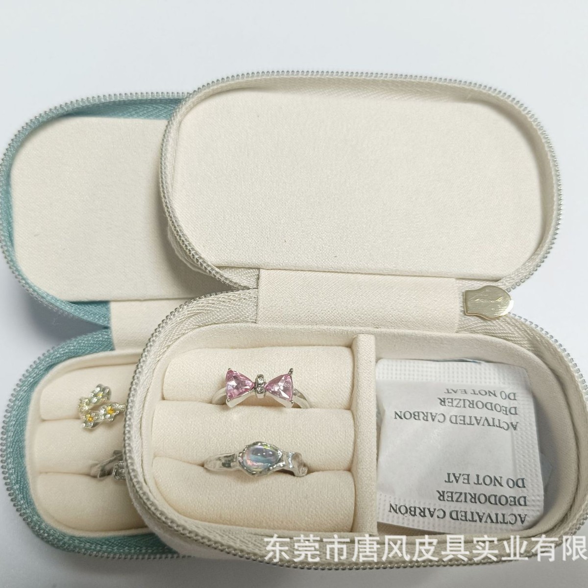 Mini Zipper Jewelry Ring Earring Storage Box Velvet Portable Travel Jewelry Box Jewelry Box Wholesale Cross-Border