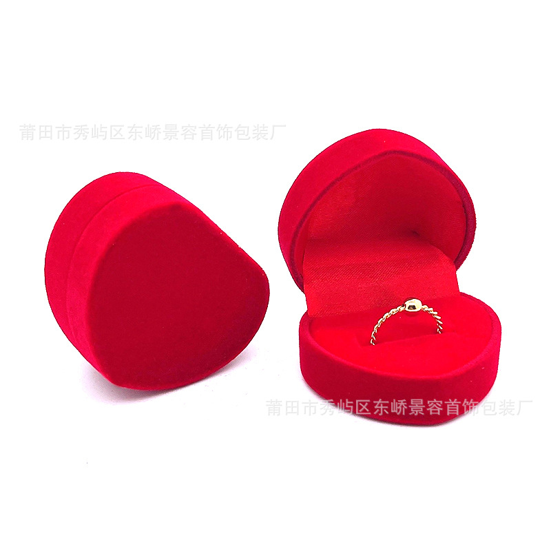Red Peach Heart Ring Box Flannel Box Ear Nail Box Wedding Proposal Ring Box Spray Velvet Red Bottom Ring Jewelry Box