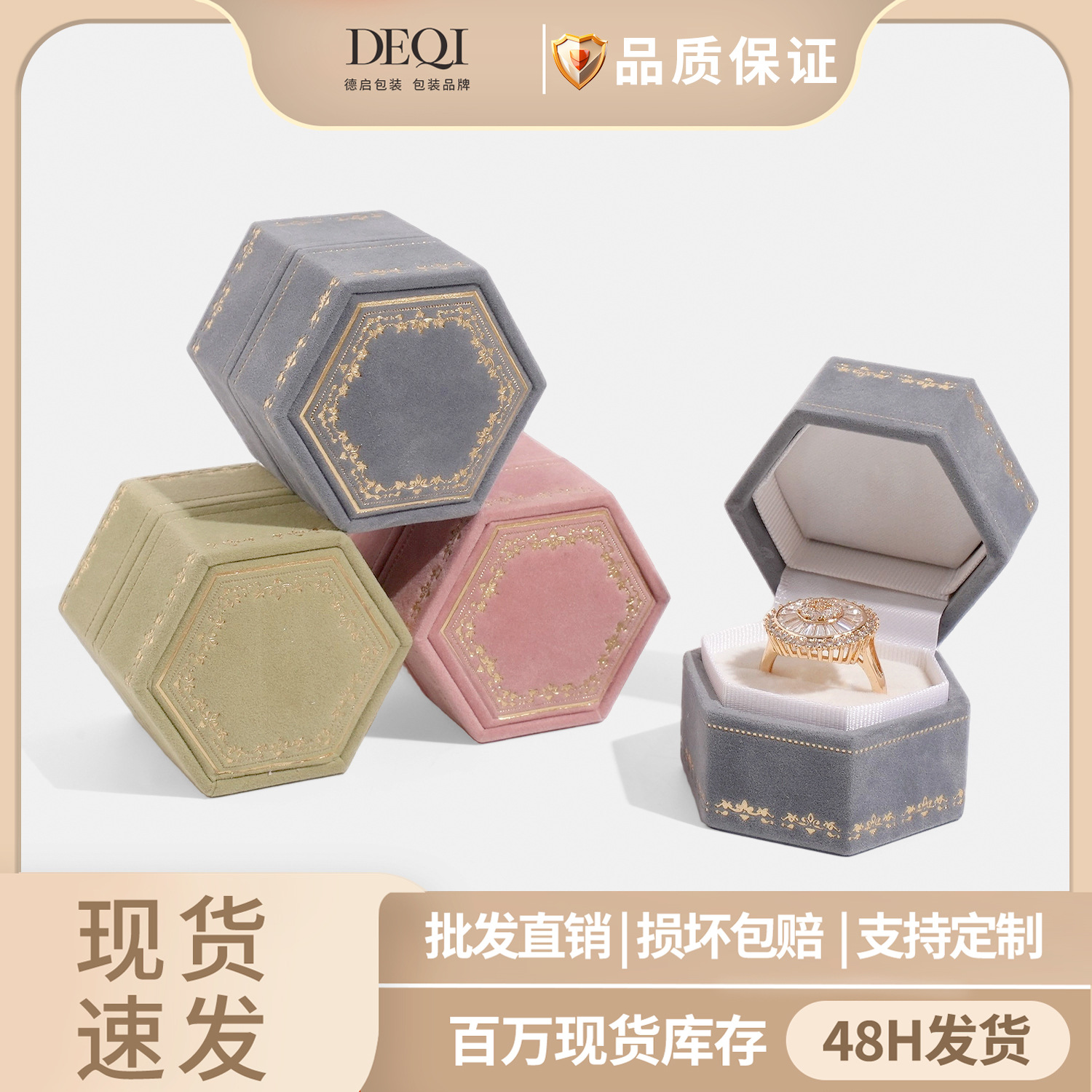 Deqi Hexagonal Ring Box, High-End Flip-Top Jewelry Box, Jewelry Proposal, Wedding Diamond Ring Box, Earrings, Paper Velvet Storage Box