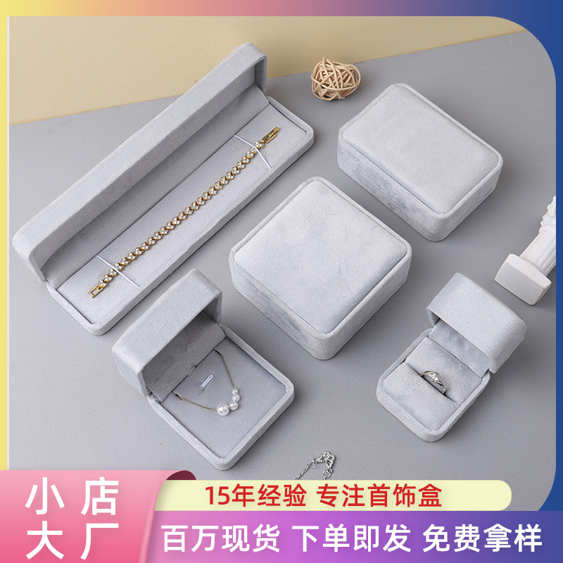 Cross-Border Version Gray Rounded Corner Velvet Jewelry Box Pendant Bracelet Ring Jewelry Packaging Box Long Chain Box Jewelry Box