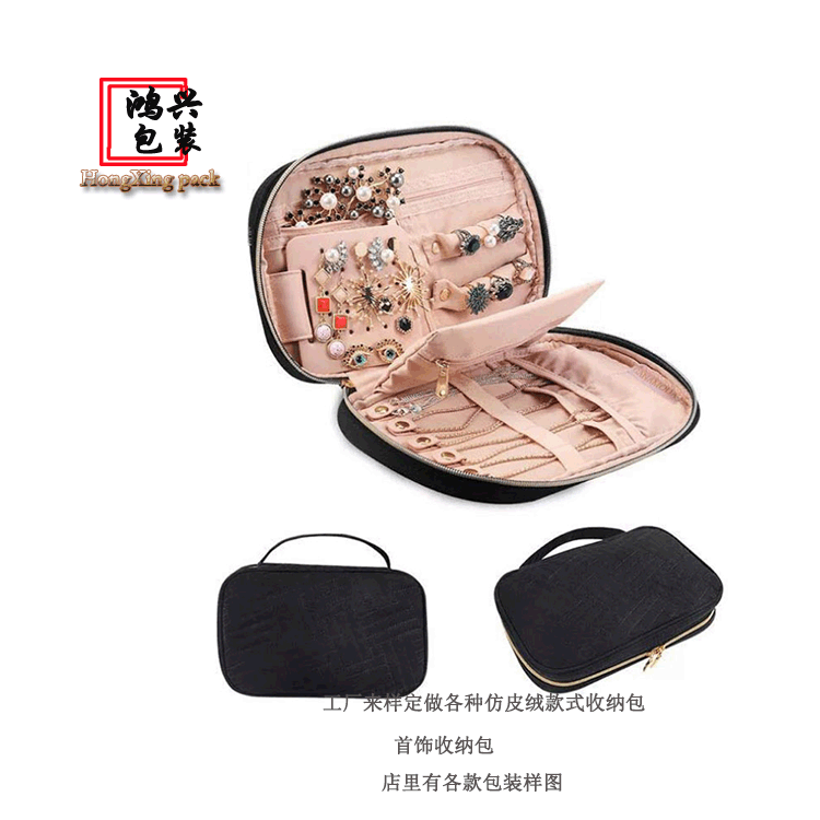 Spot multi-functional jewelry storage bag imitation leather velvet portable large capacity jewelry bag portable earrings storage roll bag