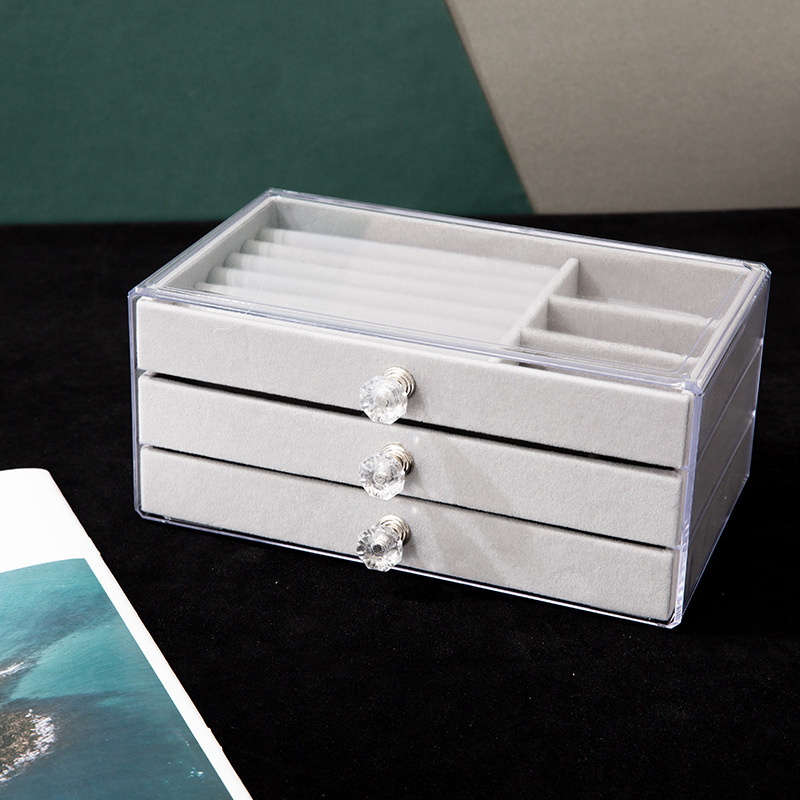 3-Layer 4-Pull Velvet Bottom Plaid Transparent Jewelry Storage Box Jewelry Box Desktop Organization Box