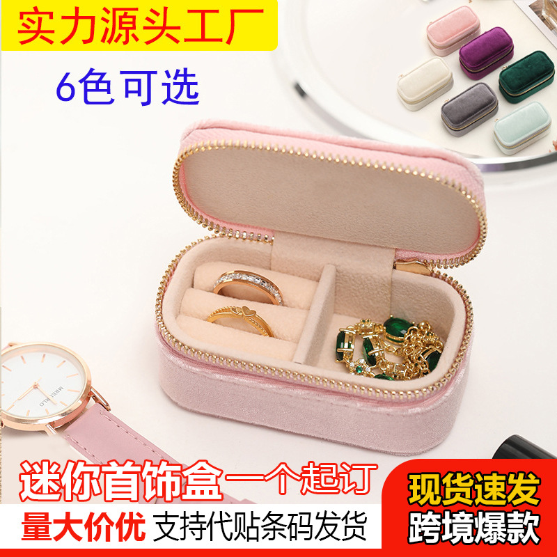 Cross-Border Simple Jewelry Box Travel Portable Jewelry Box Velvet Creative Earrings Ring Storage Box Mini Ready Stock