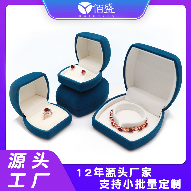 High-end velvet jewelry box factory creative arch stud earrings ring box royal blue bracelet box