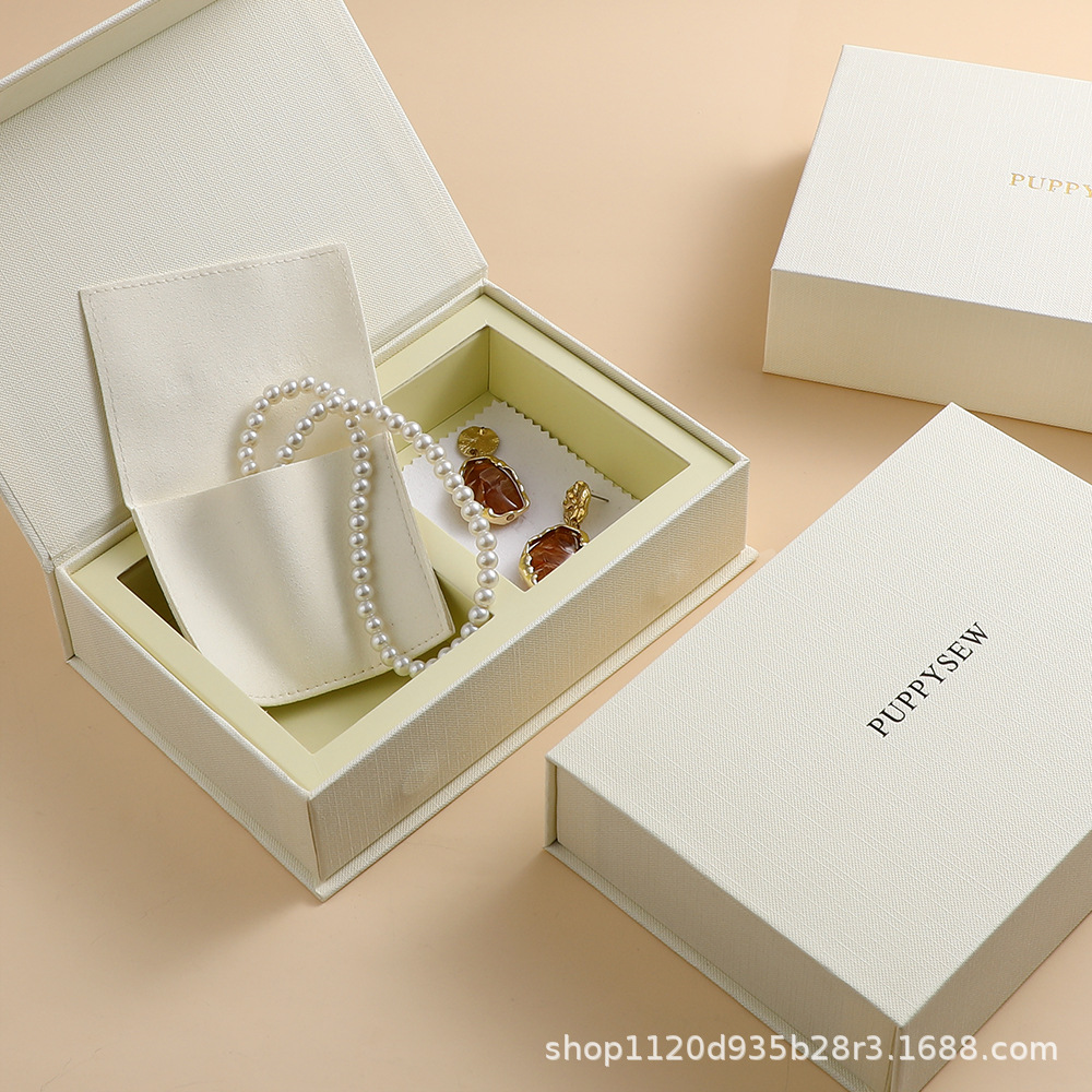 Exquisite High-End Magnetic Box Jewelry Storage Box Book-Shaped Box Velvet Storage Bag Jewelry Packaging Bag Set