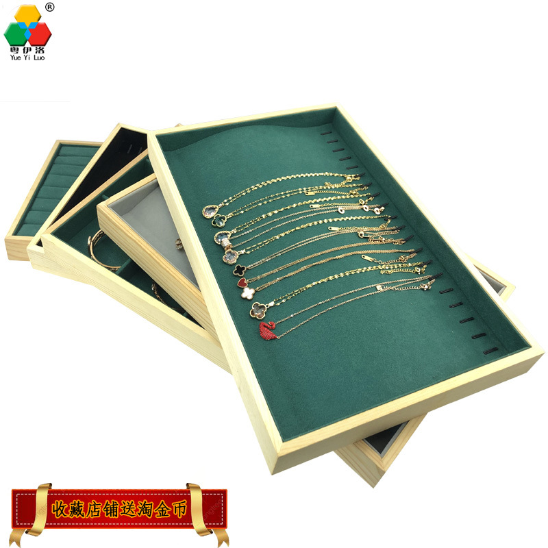 Natural Solid Wood Ring Earrings Necklace Jewelry Display Tray Jewelry Live Jade Stall Storage Display Props