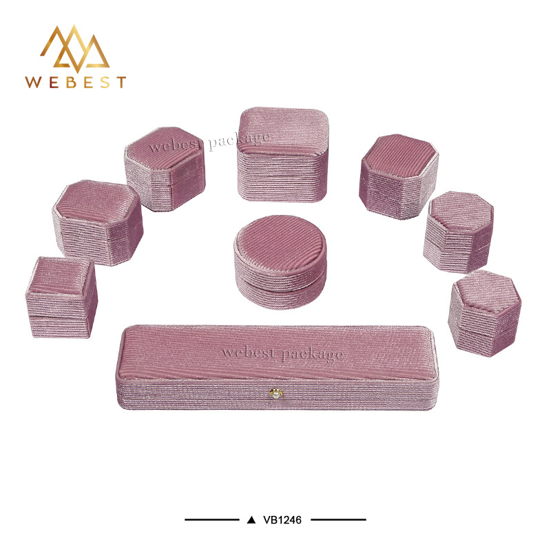 Factory Creative Polygon Pink Striped Velvet Jewelry Box Earrings Necklace Bracelet Bracelet Ring Jewelry Packaging Box