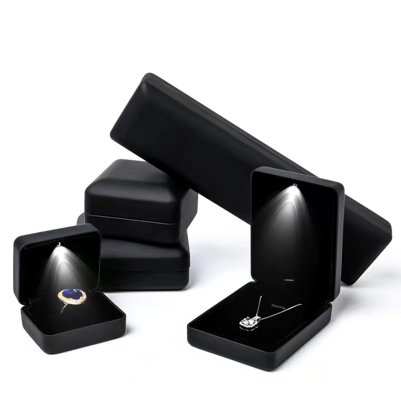 High-end led lamp PU leather bracelet gift box ring gift pearl necklace jewelry packaging box printable logo